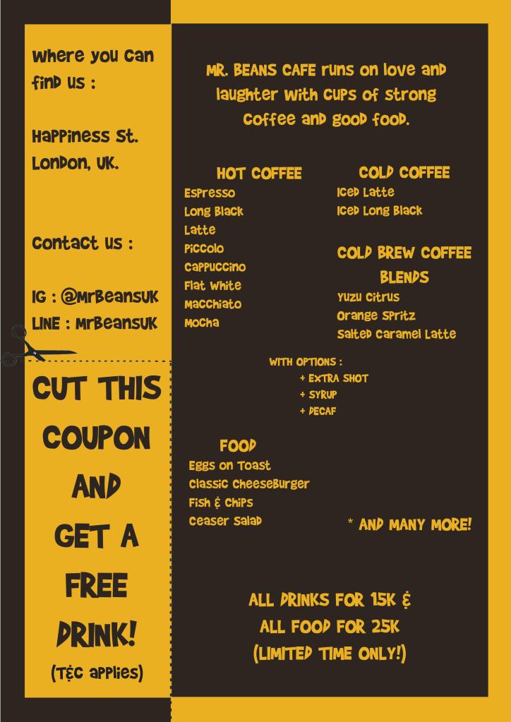 This Desktop Publishing project was intended to teach students on creating a brochure for coffee shops. This was done as a weekly assignment project. The project itself contains a 2 page brochure which is meant to be printed and published in respect to University of Pelita Harapan.